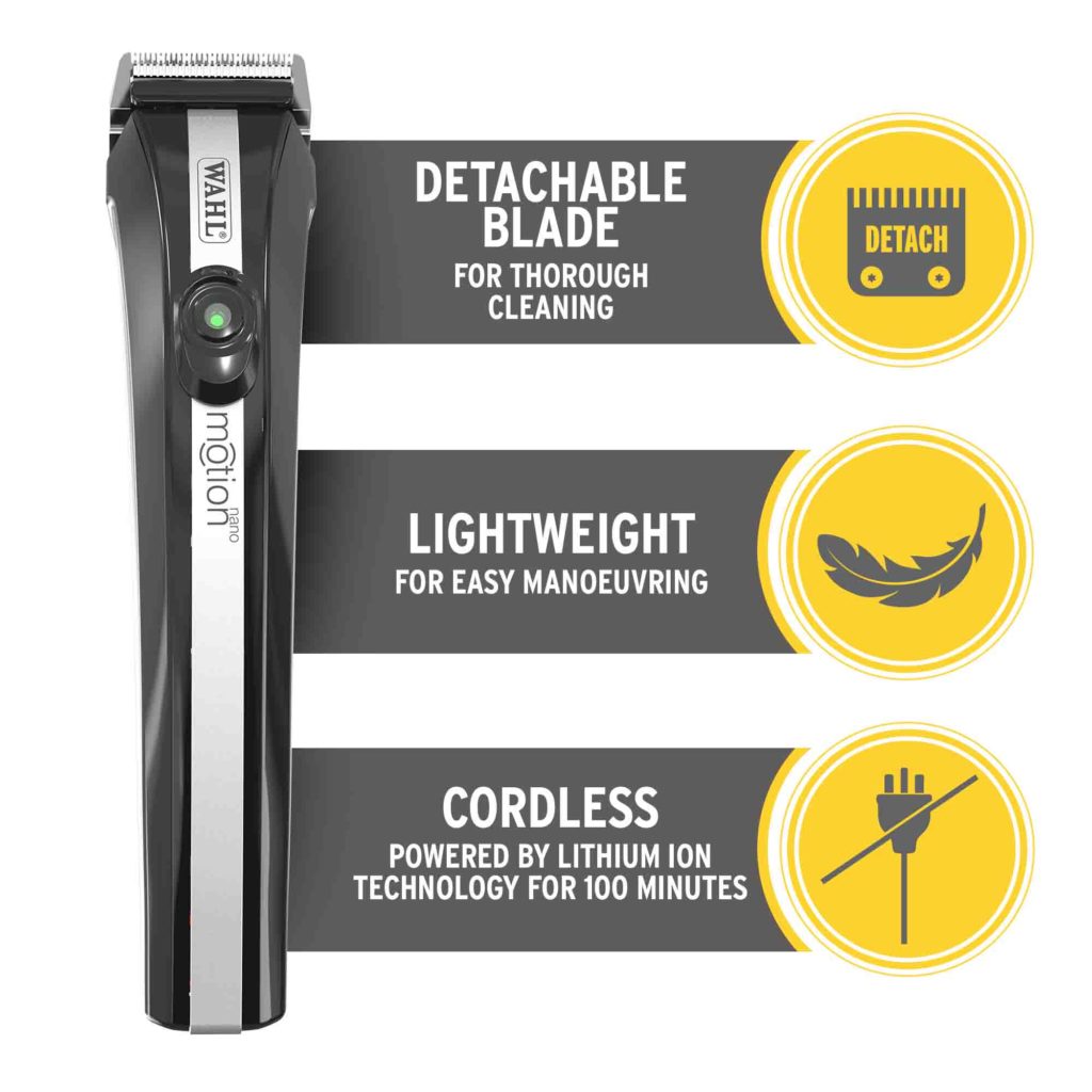 Partner to the Motion Clipper, the Wahl Motion Nano is lightweight for easy manoeuvring and super quiet at just 60 decibels.