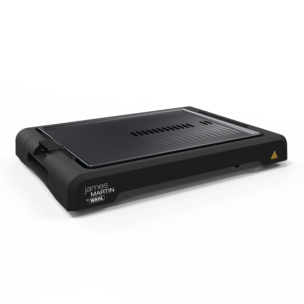 The James Martin by Wahl Healthy Table Top Grill with ridged and flat cooking areas and variable temperature control, is perfect for cooking healthily  a variety of foods including steak and fish.