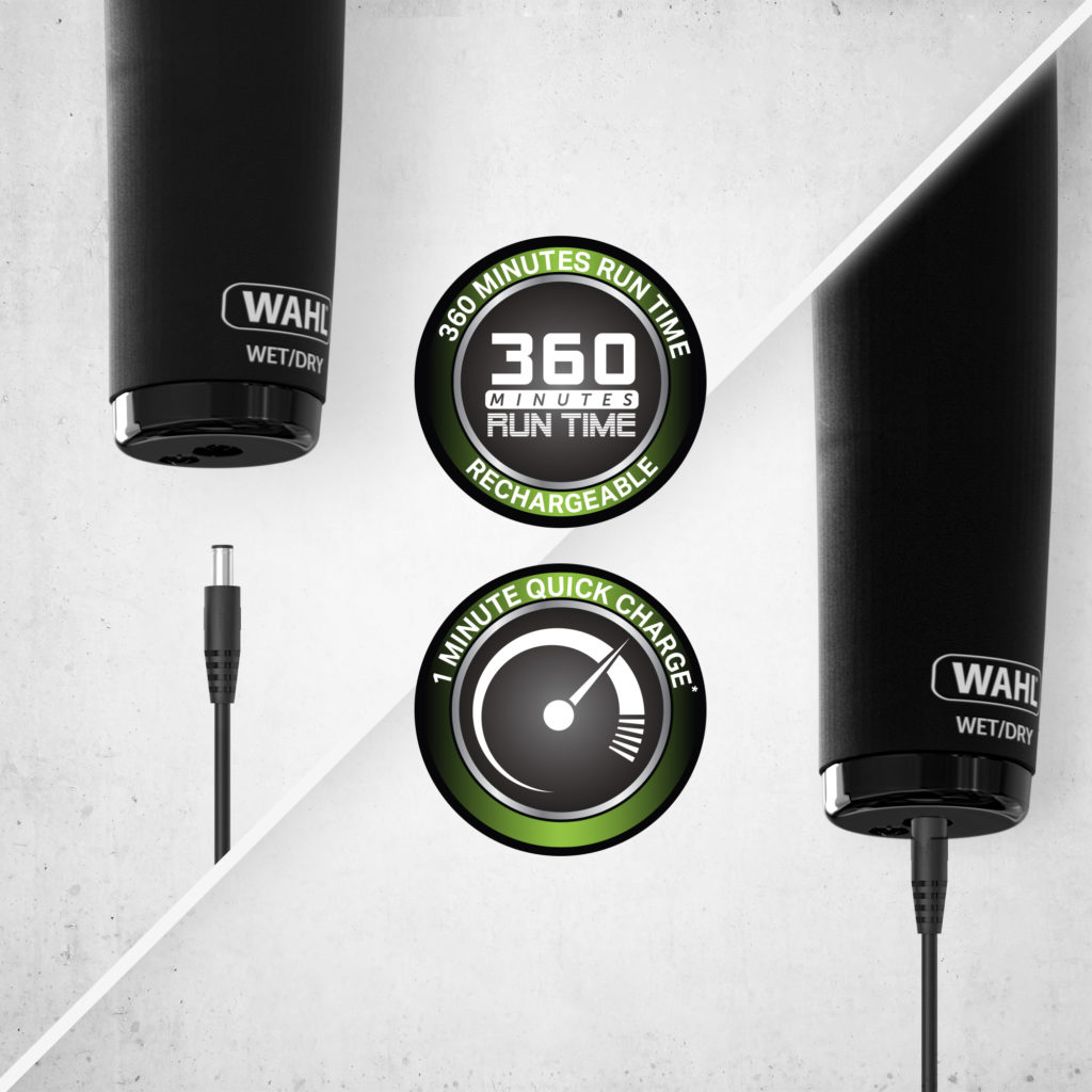 Wahl’s Advanced Lithium Ion technology allows up to an impressive 360 minutes cordless run time from a 60-minute charge which equivalates up to 4 months use on a single charge. Use the 3-minute quick charge that will give you 3 minutes continual use for last minute touch ups.